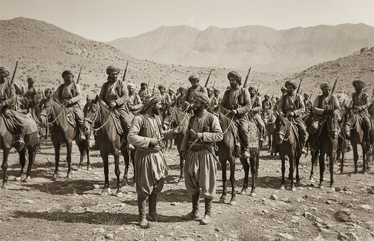 Şemûnê Henê Heydo, hema dûrbînek û cotek goreyên hirî yên neqişandî, ber bi Elîk ve dirêj kirin û got, ha ji te re dûrbên û goreyên qumandarê ser topê. Elîk rahişte dûrbîn û goreyan û got, ev gore bila diyariya qumandar bin û xistin xurcezîna ser hespê xwe.