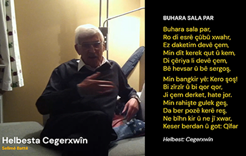 Selîmê Battê, ku gelek helbestên Cegerxwîn ji ber dizanîn, di vê vîdeoyê de, helbesta "Behara Sala Par" dibêje..